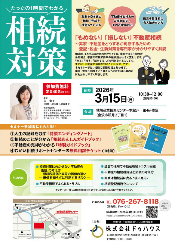 2026年3月15日(日)「もめない」「損しない」不動産相続【たったの1時間でわかる相続対策セミナー】